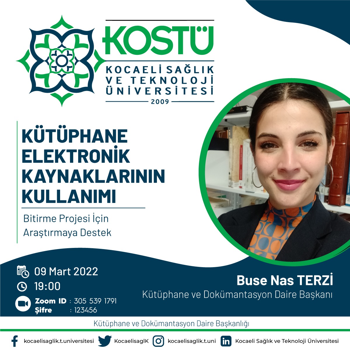 E- Kaynakların Kullanımı İle Araştırmaya Destek Eğitimi Tarih 09/03/2022 Önceki yazı KOSTÜ' de ''Kariyerinde Fark Yaratan Kadınlar Zirvesi '' 09/03/2022 Sonraki yazı Mersin' de Tercih ve Tanıtım Fuarındayız 10/03/2022