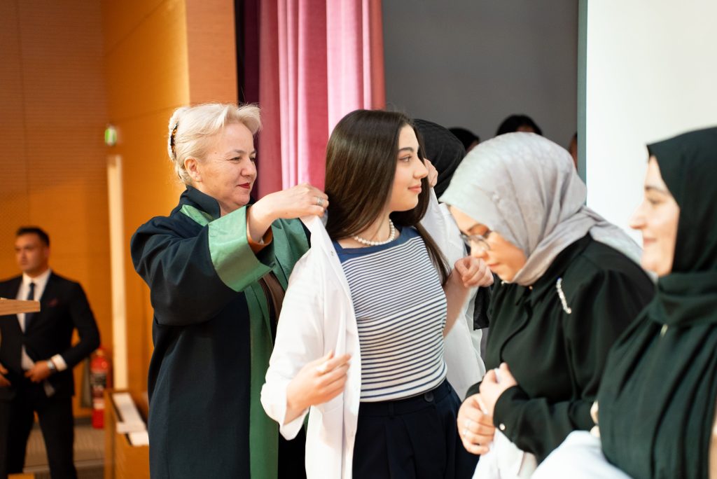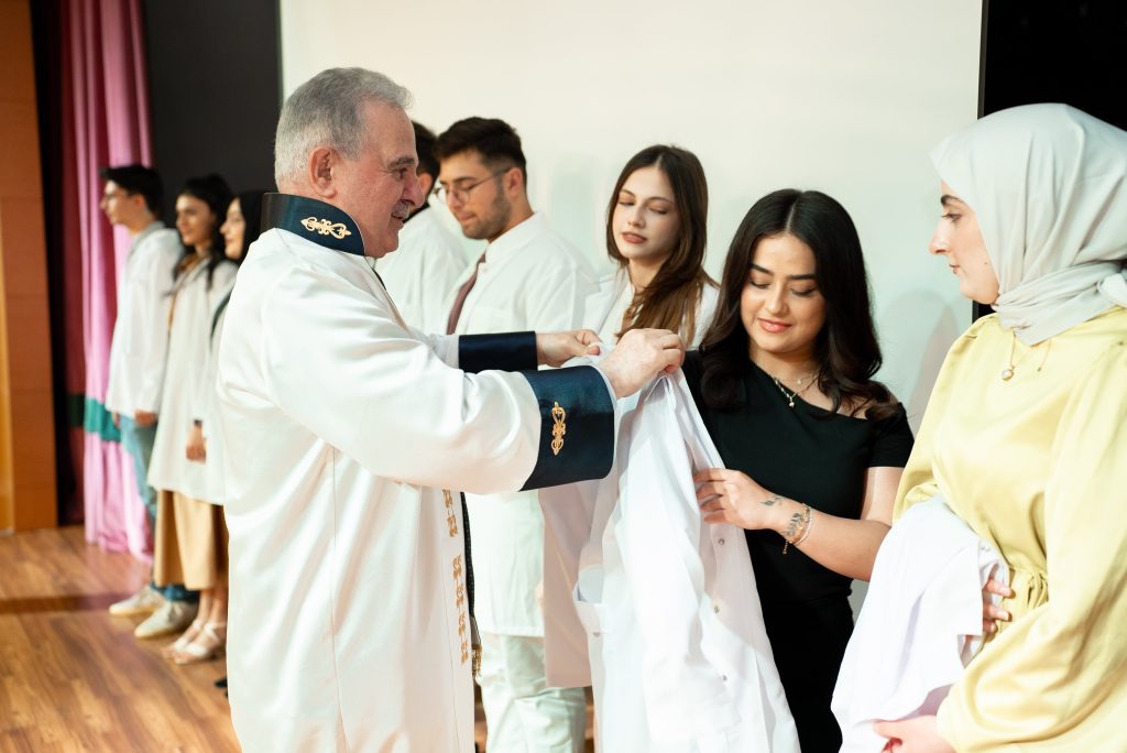 Rektörümüz Muzaffer ELMAS, öğrencilerimize mesleklerine olan adanmışlıklarını ve geleceğe olan güvenlerini beyaz önlükleriyle gösterdikleri için tebriklerini iletti. Profesyonel kariyerlerinde başarılar ve sağlıklı bir gelecek diledi.