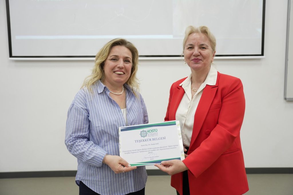 Eğitici Eğitimi Sertifika Programımız farklı günlerde hibrit olarak devam etti. Program kapsamında, Kocaeli Üniversitesi Eğitim Fakültesi’nden Doç. Dr. Funda Dağ, “Eğitimde Üretken Yapay Zeka Kullanımı” konulu sunumuyla katılımcılarla değerli bilgi ve deneyimlerini paylaştı. Düzce Üniversitesi Eğitim Fakültesi’nin kıymetli öğretim üyeleri Prof. Dr. Mustafa Koç, Prof. Dr. Süleyman Gökköy ve Doç. Dr. Ender Kazak da “Sınıf Yönetimi, Yetişkin Eğitimi ve Özellikleri, Öğrenme Motivasyonu” alanlarında yenilikçi ve ilham verici sunumlarıyla programımıza katkı sundular.
