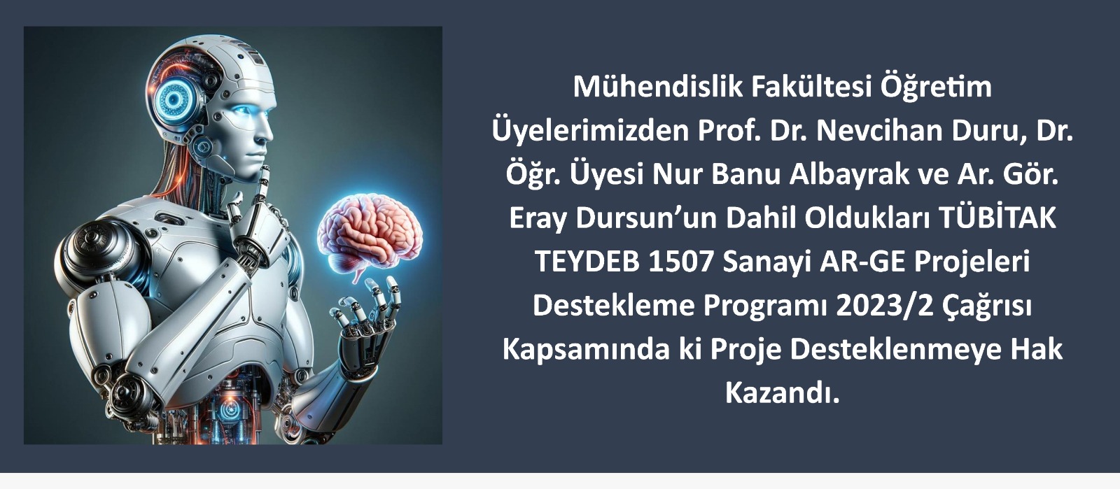 Fakültemiz Öğretim Üyelerimizden Prof. Dr. Nevcihan DURU, Dr. Öğr. Üyesi Nur Banu ALBAYRAK ve Arş. Gör. Eray DURSUN’ un Projesi TÜBİTAK TEYDEB 1507 Sanayi AR-GE Projeleri Destekleme Programı 2023/2 Çağrısı Kapsamında Desteklenmeye Hak Kazandı