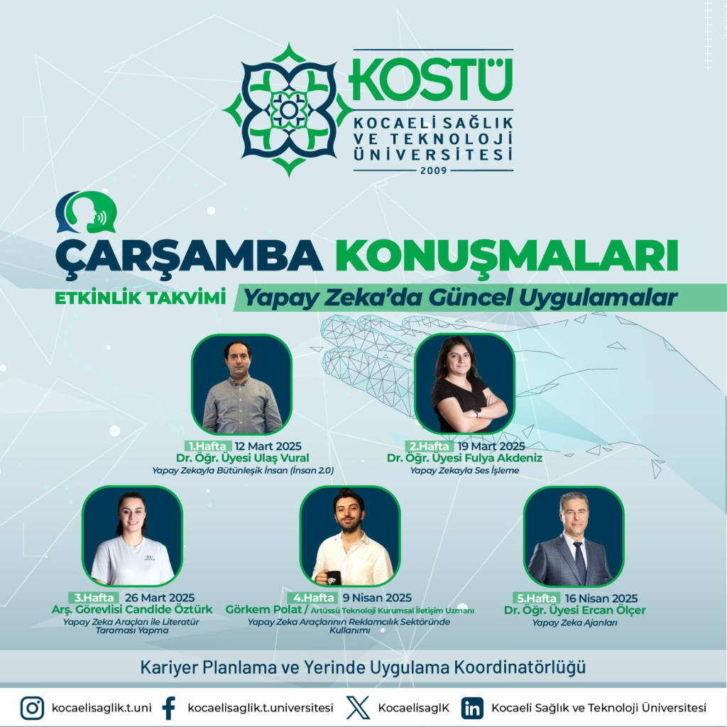 The main topic of the Wednesday Talks in the 2024-2025 Spring semester is “Artificial Intelligence.” These events will be held face-to-face at the school on Wednesdays from 2:00 PM to 3:00 PM.