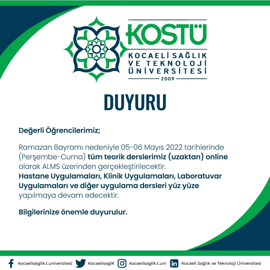 Important Announcement Regarding Courses on May 5-6, 2022! Date 16 September 2025 Previous post Applications for the TÜBİTAK 2242 University Student Research Project Competitions (TEKNOFEST) have begun. 16 September 2025 Next post 2021-2022 Academic Year Spring Semester Final Exam Schedule Announced 16 September 2025