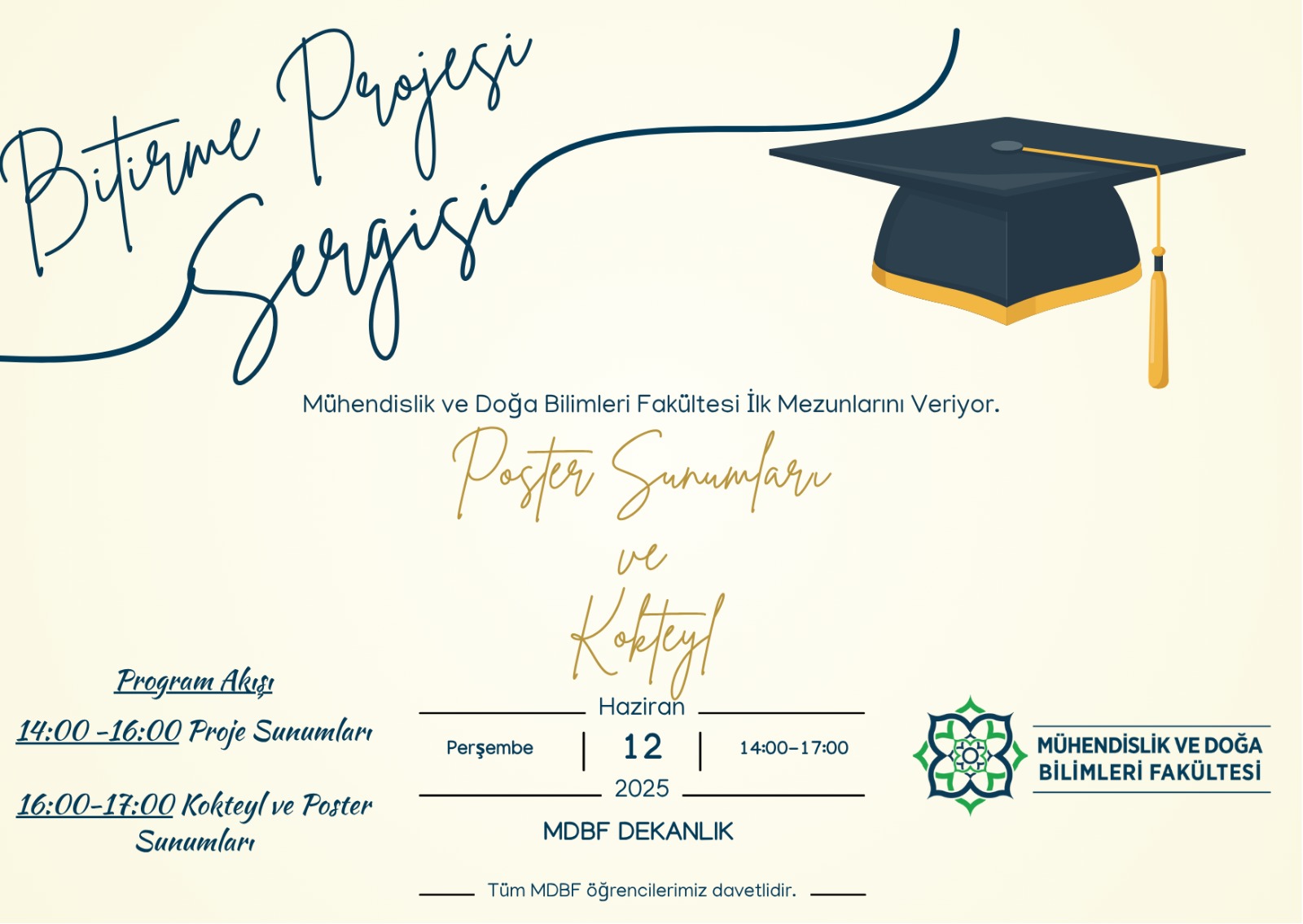 Mühendislik ve Doğa Bilimleri Fakültesi olarak, ilk mezunlarımızı uğurlarken gurur ve heyecanla hazırladıkları Bitirme Projesi Sergisine sizleri davet ediyoruz.