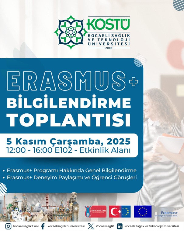 Erasmus+ ile ilgili değişim/staj fırsatları, hibe olanakları, başvuru adımları, seçim kriterleri, dil yeterliliği ve partner üniversiteler hakkında net bilgilerin paylaşılacağı toplantı, tüm bölüm öğrencilerimize bir rehber niteliğine olacak.